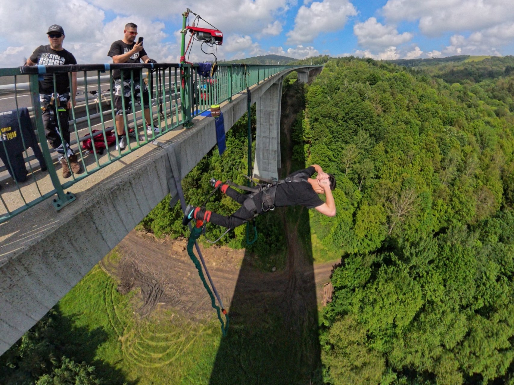 Bungee Jumping v Chomutově je skvělým dárkem pro všechny milovníky a milovnice vzrušení a adrenalinu. Věnujte svým blízkým bezpečný seskok z nejvyššího mostu v České republice.