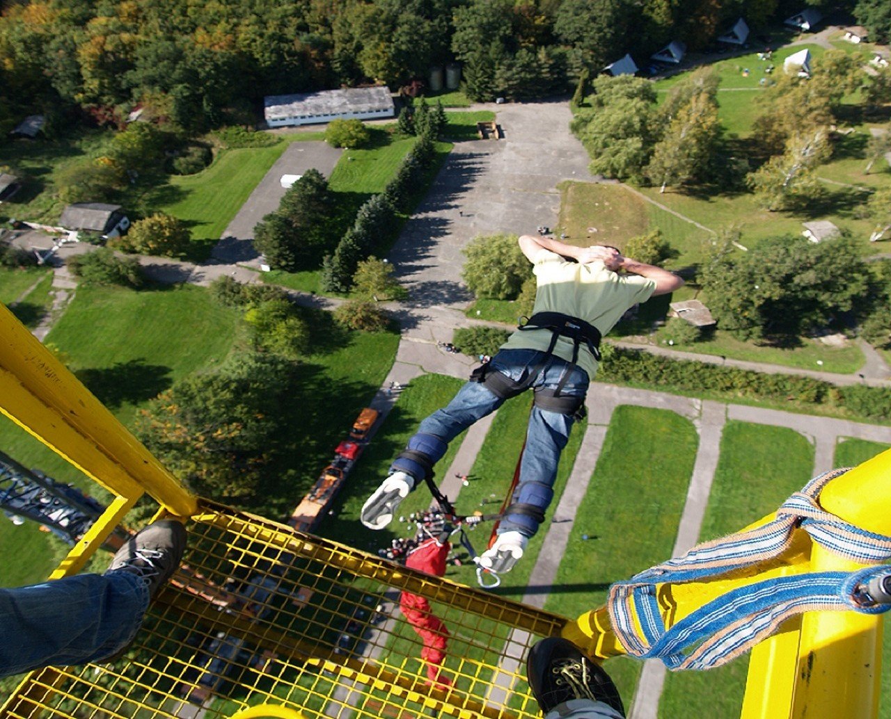 Darujte bungee jumping z jeřábu v Ostravě. Připravte se na jeden z nejúžasnějších zážitků ve vašem životě! Ponořte se do adrenalinové seskoku po hlavě nebo po nohách z neuvěřitelné výšky 50 metrů..5..4..3..2..1.. Jdete to toho?
