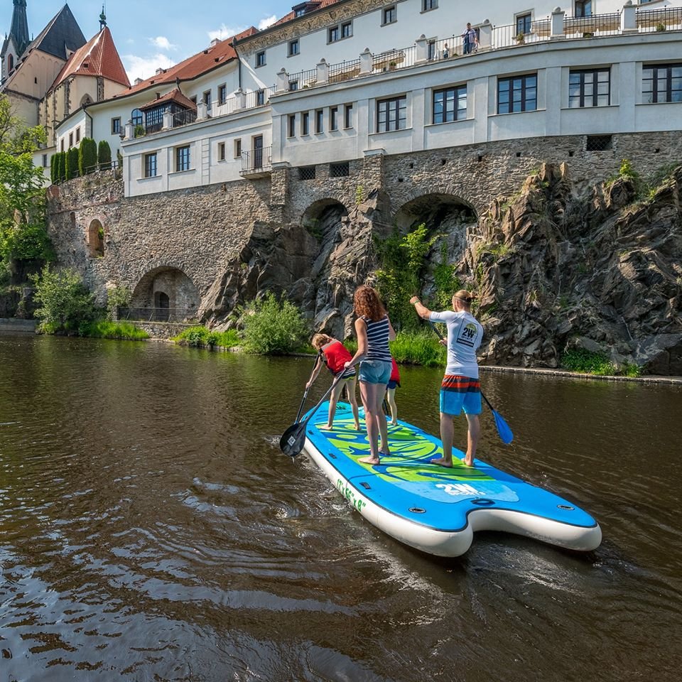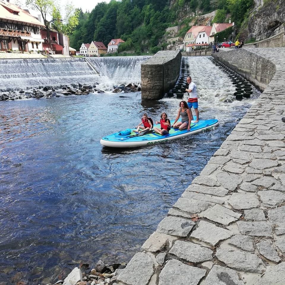 Nejzábavnější sjíždění Vltavy v okolí Českého Krumlova pro partu přátel nebo pro celou rodinu. Velký paddleboard až pro 6 osob je zaručenou zábavou, náročnost si sami určujete, jezy můžete přenášet, sjíždět v kleče a ty nejodvážnější sjedou jez ve stoje a to už je pořádná porce adrenalinu.