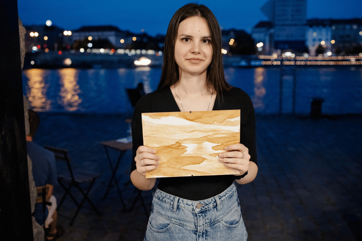 V příjemných prostorech krásné kavárny, navnaděni omamnou vůní kávy, začnete s malováním. Hořkosladký nápoj se pro vás stane inspirací i prostředkem k namalování vašeho vlastního obrazu. Kávu totiž nebudete pouze ochutnávat, ale použijete ji i jako barvu.