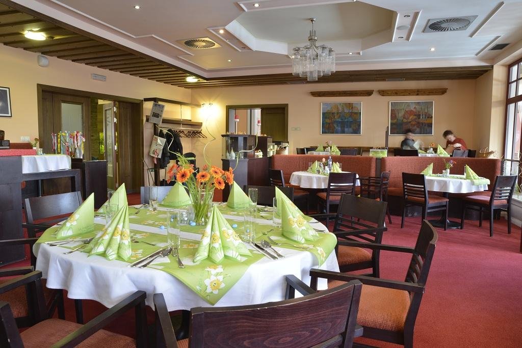 Hotelové večeře probíhají vždy v časech od 18:00 - 20:00 hod. v hotelové restauraci. Ke společenskému rázu večera upřednostňujeme společenský oděv. Prosíme nevstupovat do hotelové restaurace ve wellness županech či pánové v krátkých kalhotách.