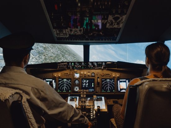 Letecký trenažer je přesnou replikou kokpitu dopravního letadla Boeingu 737. Ovládání v simulátoru funguje stejně jako v opravdovém letadle, což vám umožní zažít autentický pocit pilotování. Díky vibrační sedačce budete cítit každý pohyb a manévr, což dodá simulaci ještě více autenticity, 3 plátna s téměř 180° zorným úhlem umí dokonale simulovat pocit náklonů a pohybu letadla.
