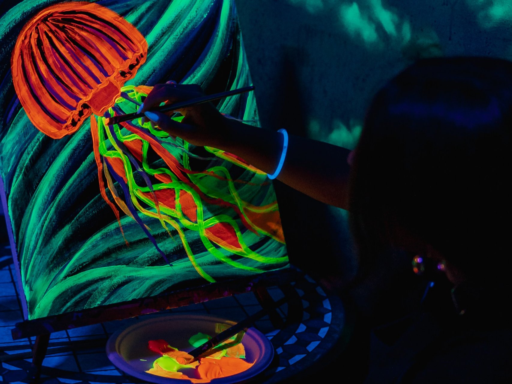 Klasické malování se štětci a barvami na plátno? Ne tak docela! Na ArtNeon vás čeká kreativní hra barev, světel a tmy. Neonové malování probíhá téměř v úplném šeru pod jemným UV světlem. Za použití barev s luminiscenčními pigmenty vytvoříte vlastní obraz, který se ve tmě efektně rozzáří. Užijte si luxusní zážitek plný umění i pohodové atmosféry.