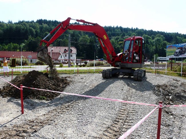 Pronájem bagru, pohonné hmoty, služby instruktora, pronájem areálu.