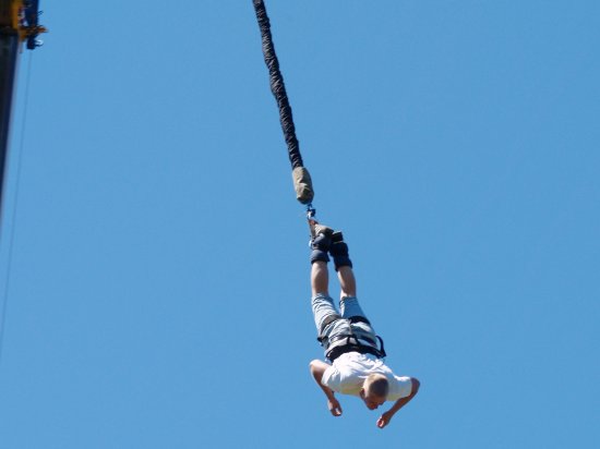 A teď to nejdůležitější – jak chcete skočit? To jak skočíte jen na vás, můžete to okoukat od skokanů před vámi a rozhodnout se až těsně před seskokem. Máte vybráno? Tak můžeme jít na to! Jeřáb vás vyveze do potřebné výšky… Postavíte se až na hranu klece a počkáte na odpočet. Po slově JUMP se odrazíte a letíte dolů. Na chvíli zažijete jedinečný stav beztíže, než vás lano – těsně nad zemí vymrští zpět. Pokud máte strach skákat sami, můžete si adrenalin vychutnat i ve dvou….