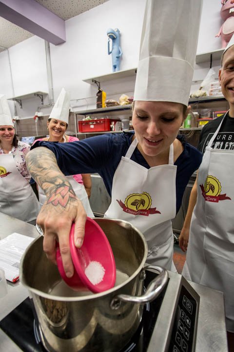 A pak už budete mít plné ruce čokolády – a to doslova! Na rozehřátí jsme si pro vás připravili výrobu šesti čokoládových lízátek ve tvaru srdce s posypem dle vlastního výběru. Dále se od našich chocolatiérů dozvíte, jak se vyrábějí lahodné pralinky a lanýže a samozřejmě si zkusíte vytvořit i své vlastní. Vaším úkolem bude vyrobit 12 lanýžů a 14 pralinek.