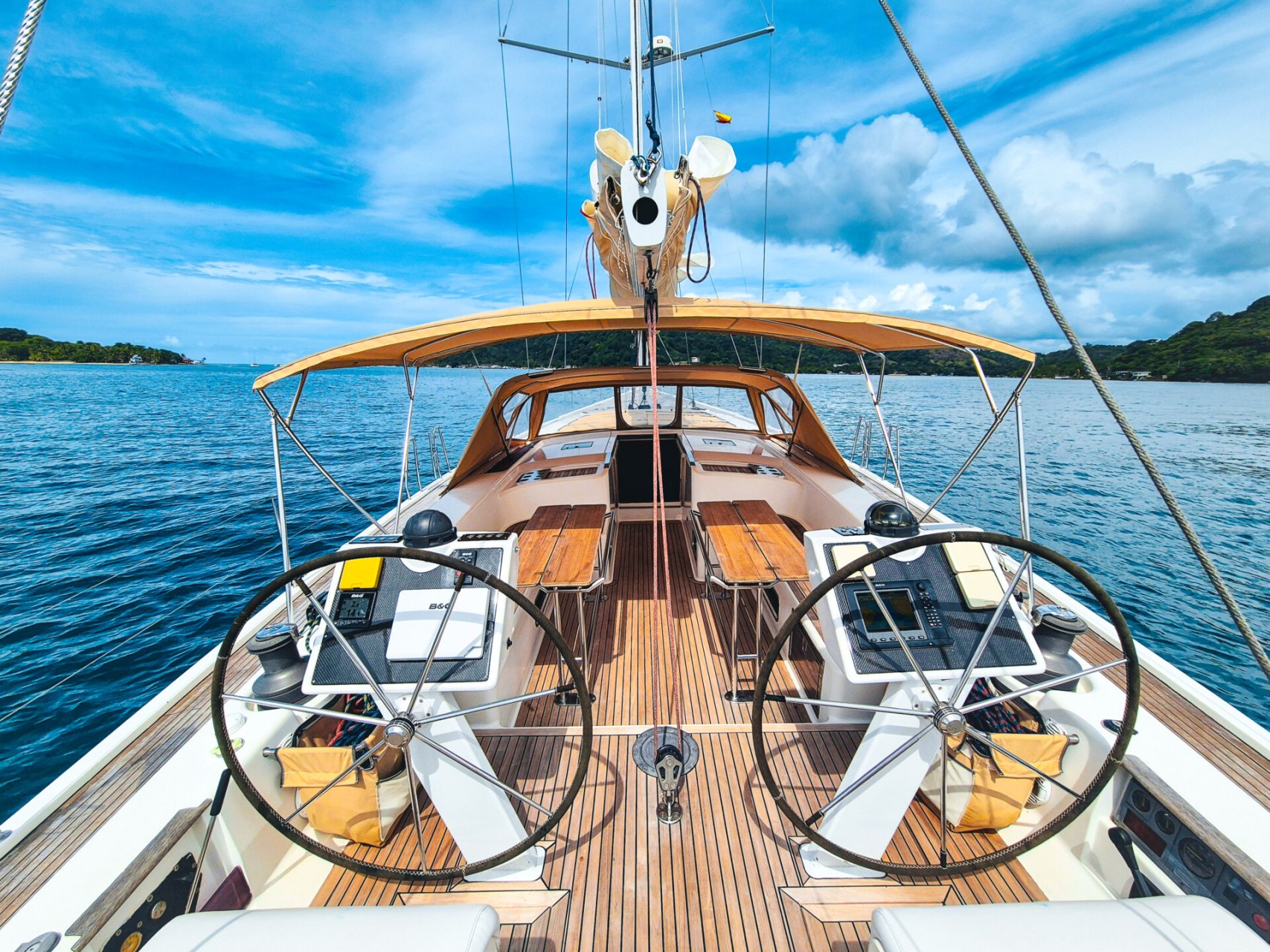 Klimatizované kajuty, vlastní koupelny, velkorysý salón, plně vybavená kuchyně, solární panely, odsolovačka, Starlink internet – nezávislost i komfort v jednom.