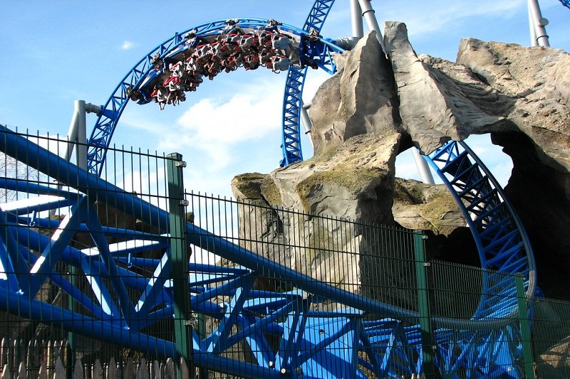 BLUE FIRE MEGACOASTER (Island) - vystřelí Vás z 0 na 100 km/h za 2,5s! Výška - 40m, celková délka horské dráhy - 1.056m, max. rychlost - více jak 100 km/hod., doba jízdy - 3min. 20s, přetížení - 3,8G.