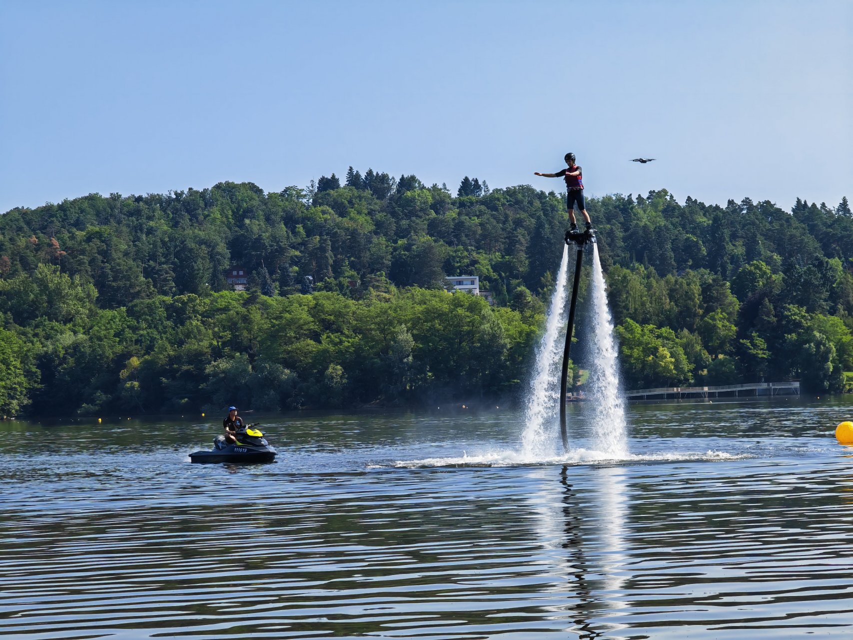 Flyboard jsou speciální boty umožňující létání nad vodou a potápění. Flyboard je napojen 18ti metrovou hadicí na vodní skútr, který vhání pod tlakem vodu do trysek pod flybordové boty. Tento systém umožňuje létat nad vodou a potápět se ve stylu delfínů. Výkon flybordu reguluje instruktor pomocí plynu na skútru.