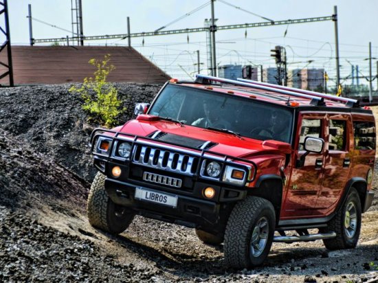 Pronájem vozu Hummer H2, pohonné hmoty, služby instruktora, pronájem areálu, 2 spolujezdci.