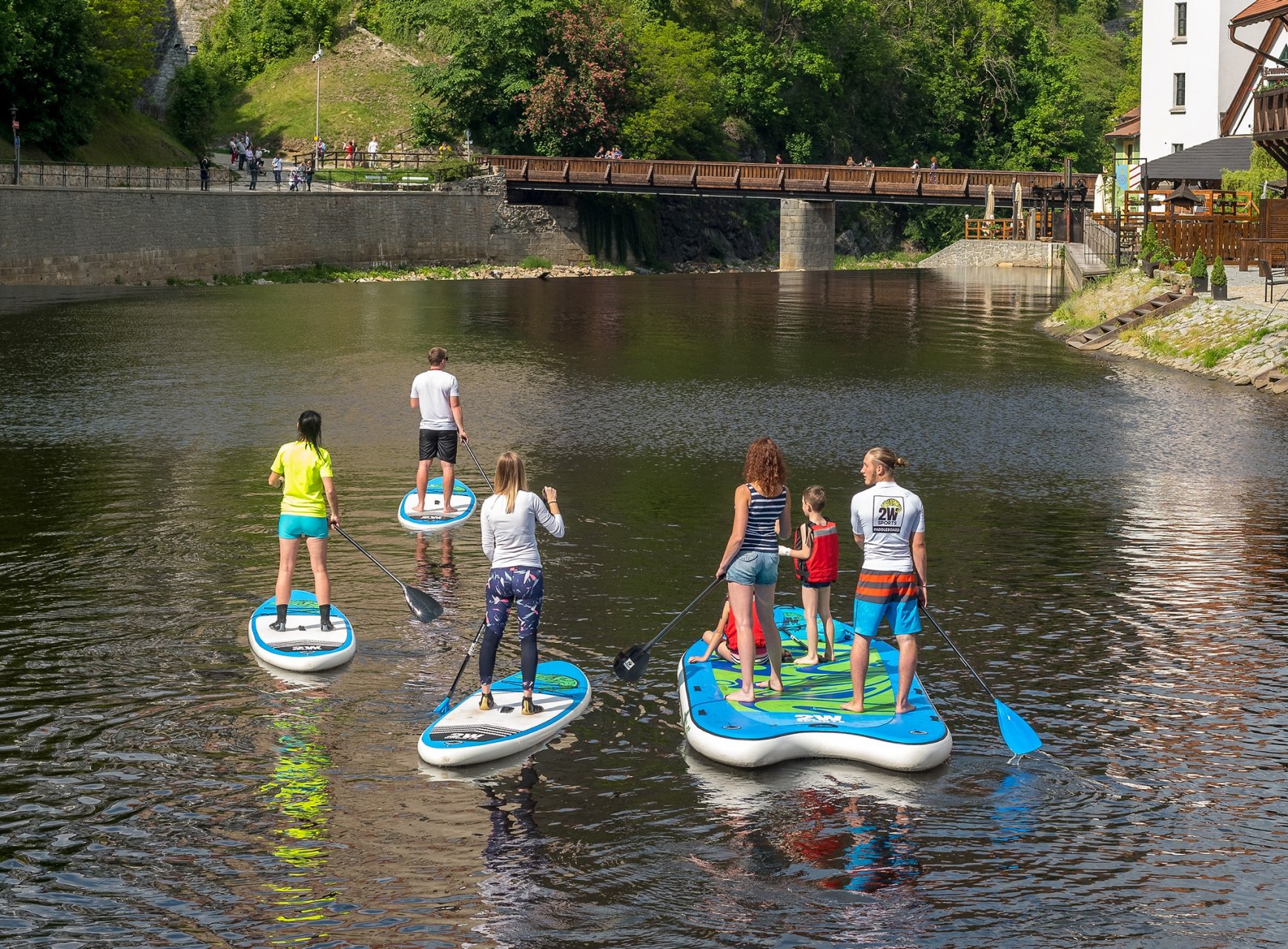 Nejzábavnější sjíždění Vltavy v okolí Českého Krumlova pro partu přátel nebo pro celou rodinu. Velký paddleboard až pro 6 osob je zaručenou zábavou, náročnost si sami určujete, jezy můžete přenášet, sjíždět v kleče a ty nejodvážnější sjedou jez ve stoje a to už je pořádná porce adrenalinu.