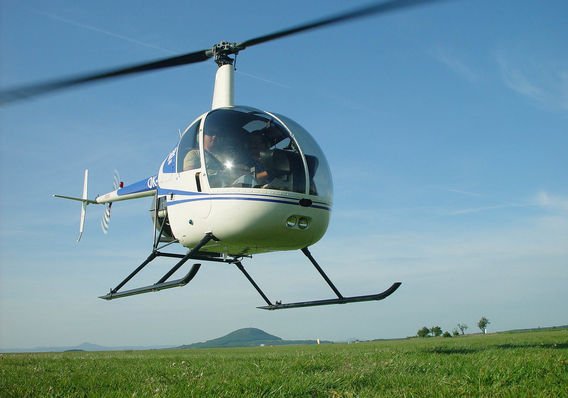 Let pro 1 osobu + pilot realizujeme dvoumístným vrtulníkem Robison R22 - maximální váha pasažéra je 100 kg
