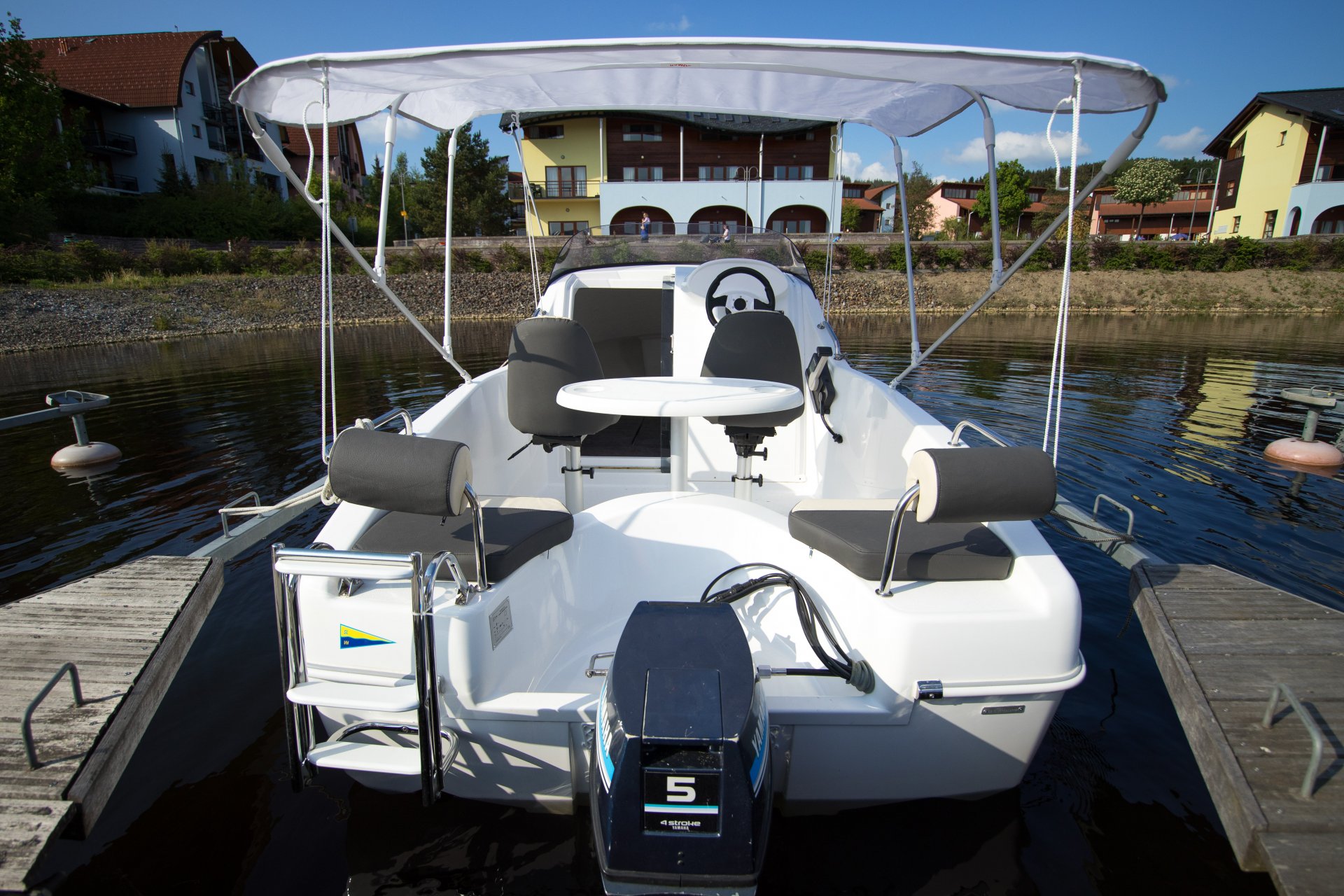 Nabízíme vám privátní jízdu motorovým člunem po Lipenské přehradě, motorový člun vám na 3 hodiny půjčíme a je jen na vás kam se vydáte a co na lodi zažijete. Motorový člun si převezmete v domluvený termín v Landal Marina Lipno, po 3 hodinách vrátíte motorový člun do stejného přístavu. Motorový člun je pro 4 osoby, ovládá se klasicky volantem.