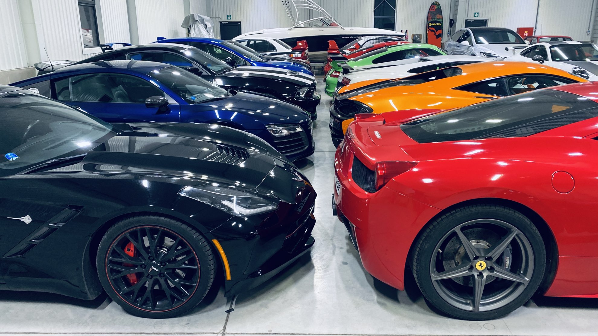 Ferrari 458 Italia, Lamborghini Huracán, McLaren 675 LT, Ford Mustang GT 5.0, Porsche 911 T, Nissan GTR, Subaru WRX STi 2018, Audi R8, Tesla Model S
