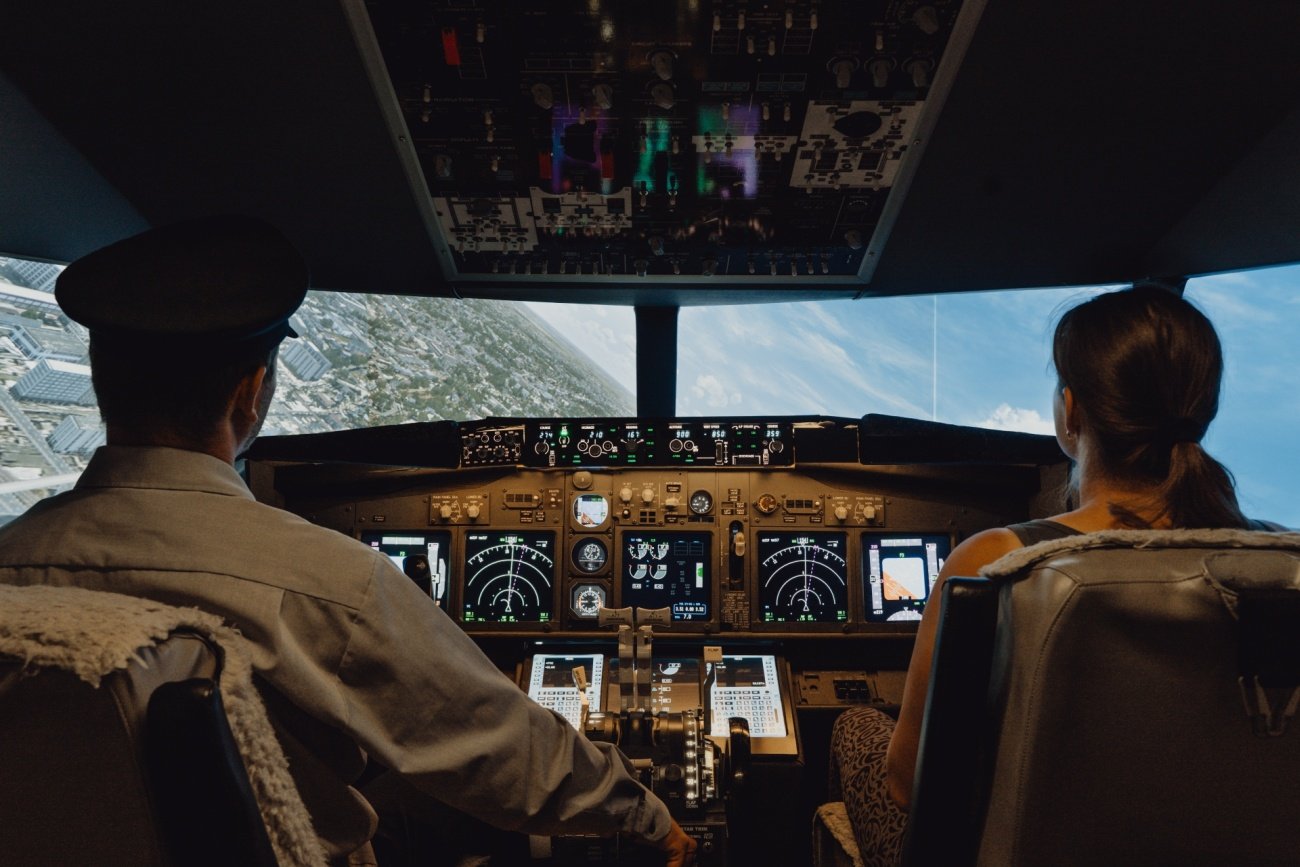 Letecký trenažer je přesnou replikou kokpitu dopravního letadla Boeingu 737. Ovládání v simulátoru funguje stejně jako v opravdovém letadle, což vám umožní zažít autentický pocit pilotování. Díky vibrační sedačce budete cítit každý pohyb a manévr, což dodá simulaci ještě více autenticity, 3 plátna s téměř 180° zorným úhlem umí dokonale simulovat pocit náklonů a pohybu letadla.