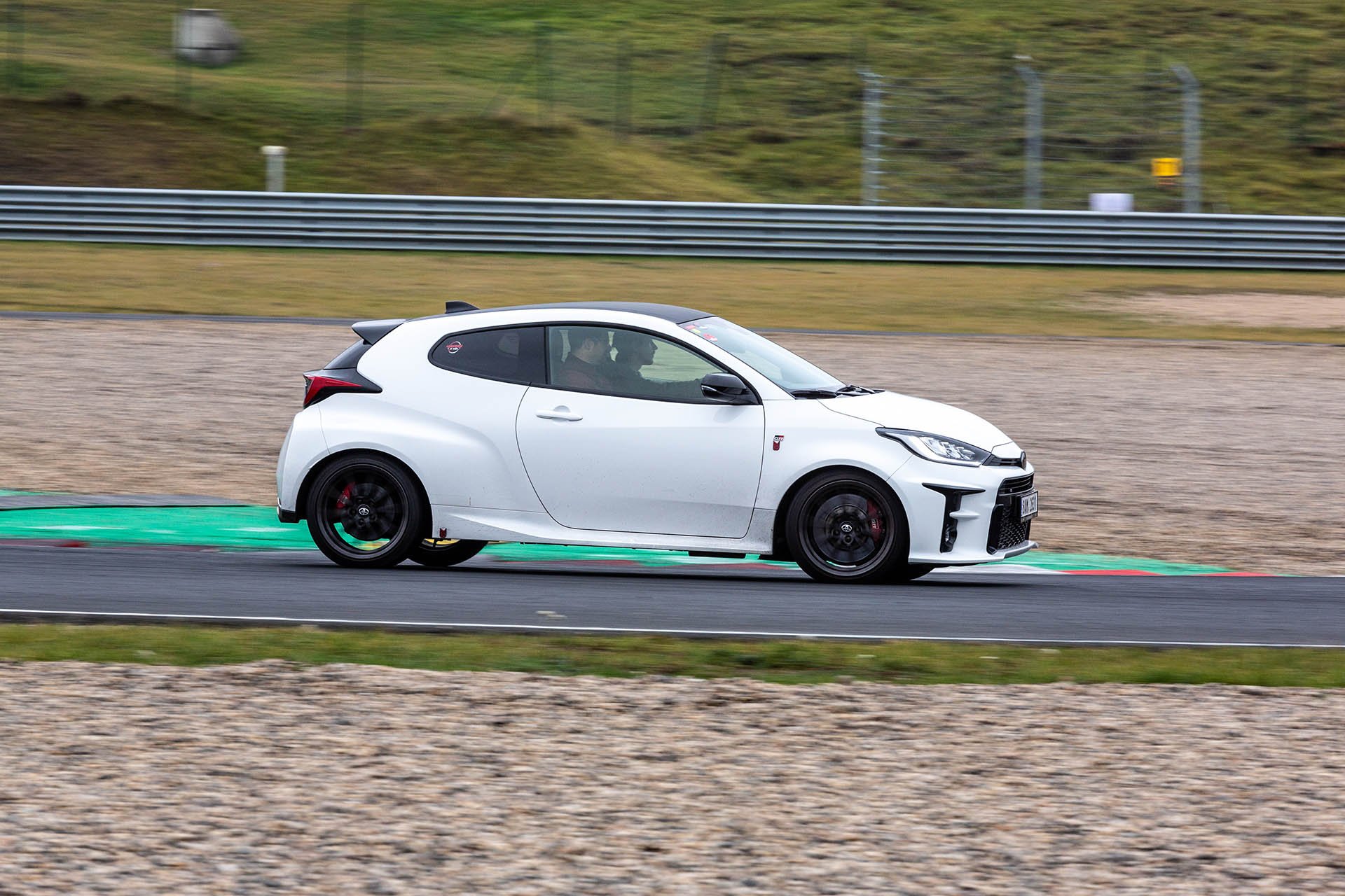 I když bylo deštivo syn si to užil. Instruktor super. Toyota Yaris GR je úžasné auto.