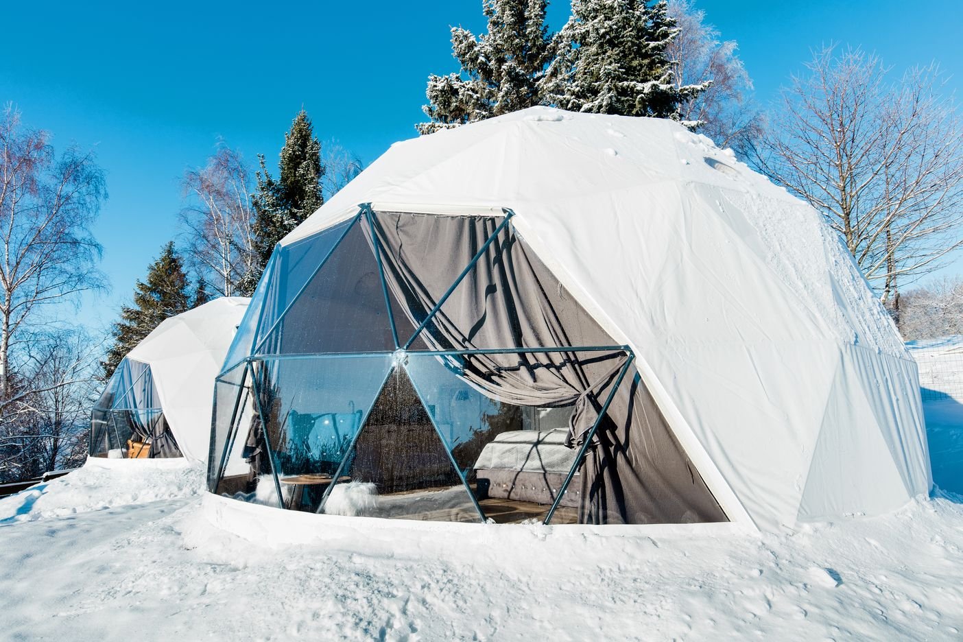 O pohodlí se bát nemusíte! Kopule je kompletně zařízená. Najdete vní nejel pohodlnou postel s luxusním výhledem, ale také kuchyňku a kopelnu s vanou nebo sprchovým koutem. V kopuli se můžete ubytovat celoročně, v zimě se o tepelný komfort postará podlahové topení.