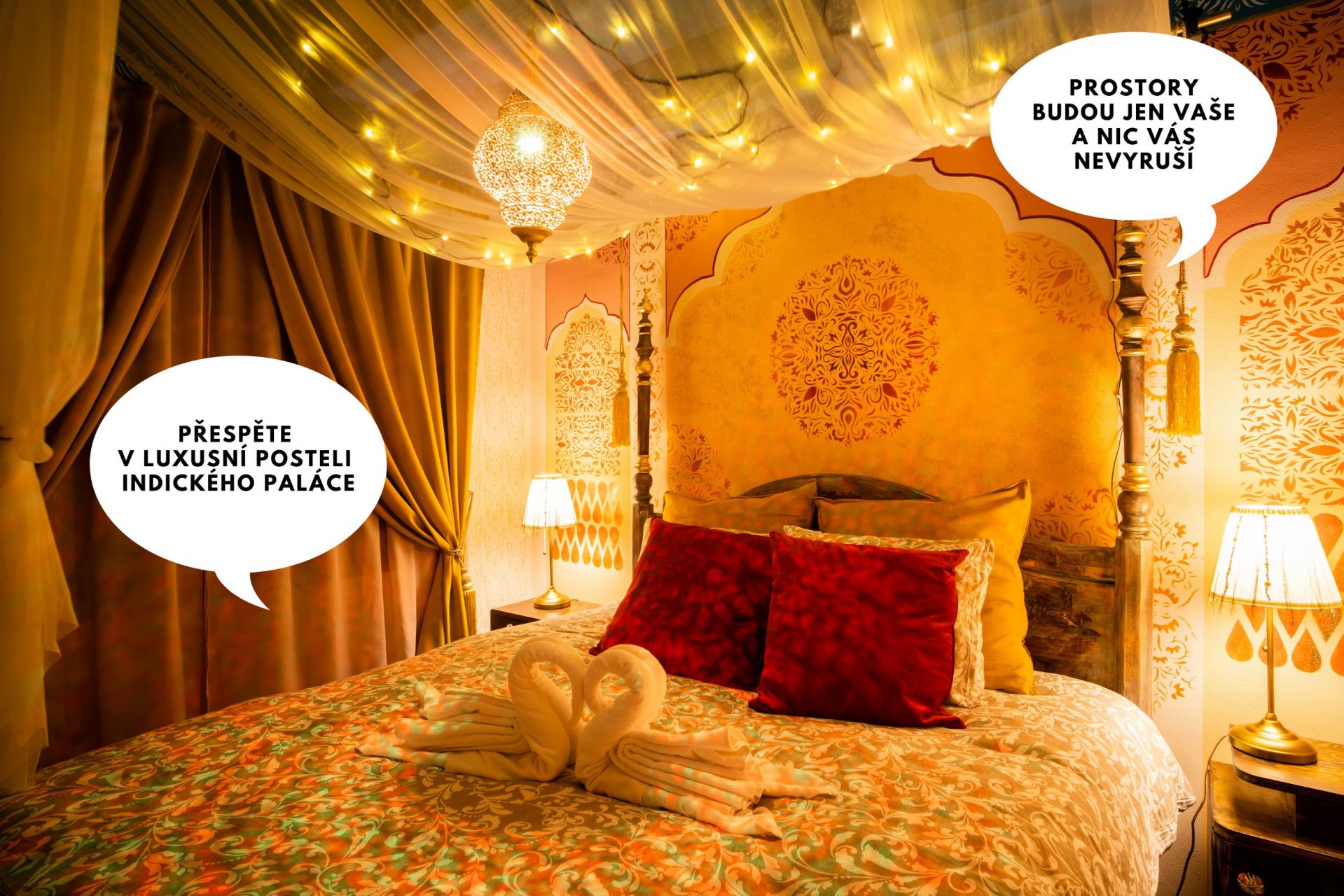 Nechte se zavát do tajů neúprosné pouštní bouře a objevte dávná tajemství i jeden druhého. Překročte hranici času a vstupte do země, kde se plní i ta nejpozoruhodnější přání. Pokoj inspirovaný příběhy tisíce a jedné noci vás okouzlí, pohltí a vyzve k mnohému, o čem jste doposud jen tajně snili.