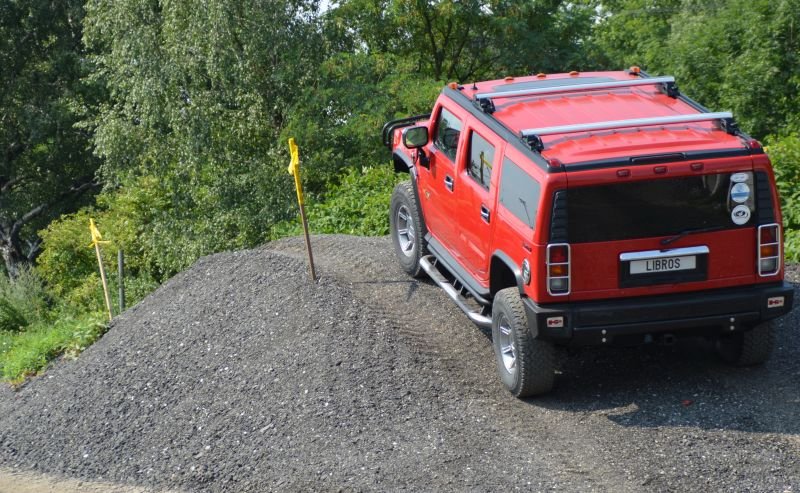 Pronájem vozu Hummer H2, pohonné hmoty, služby instruktora, pronájem areálu, 2 spolujezdci.