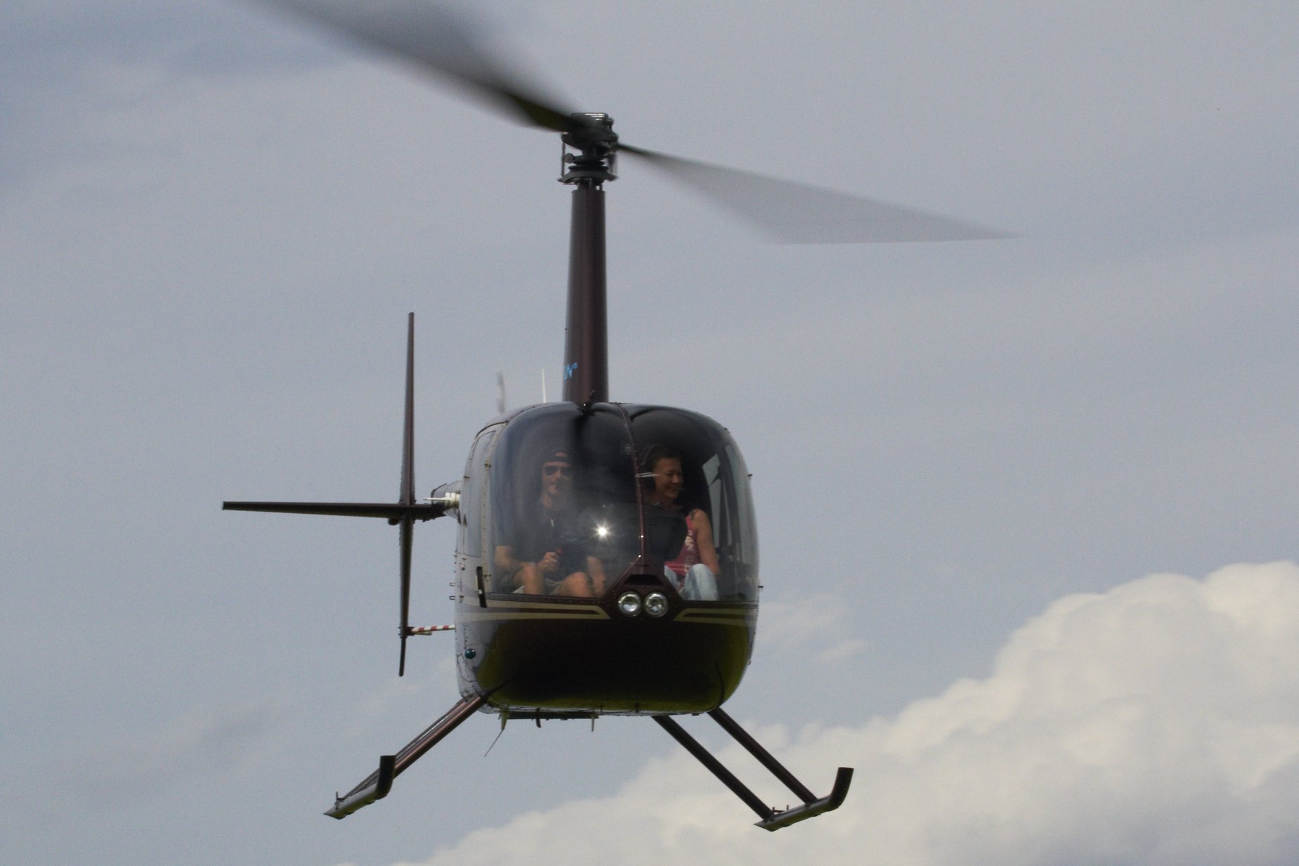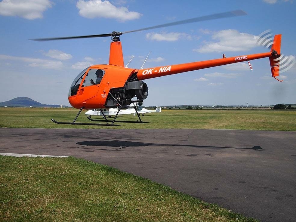 Let pro 1 osobu + pilot realizujeme dvoumístným vrtulníkem Robison R22 - maximální váha pasažéra je 100 kg