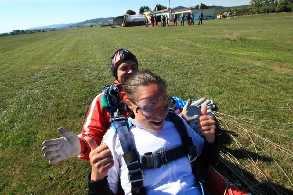 Tandemový seskok ze 3000 metrů. To se nedá ani slovy popsat. Jsem moc ráda, že jsem si to mohla zkusit. Instruktor byl skvělý a sympatický chlap, taktéž kameraman. Opravdu nevšední zážitek. Treba si to někdy zopakuji.