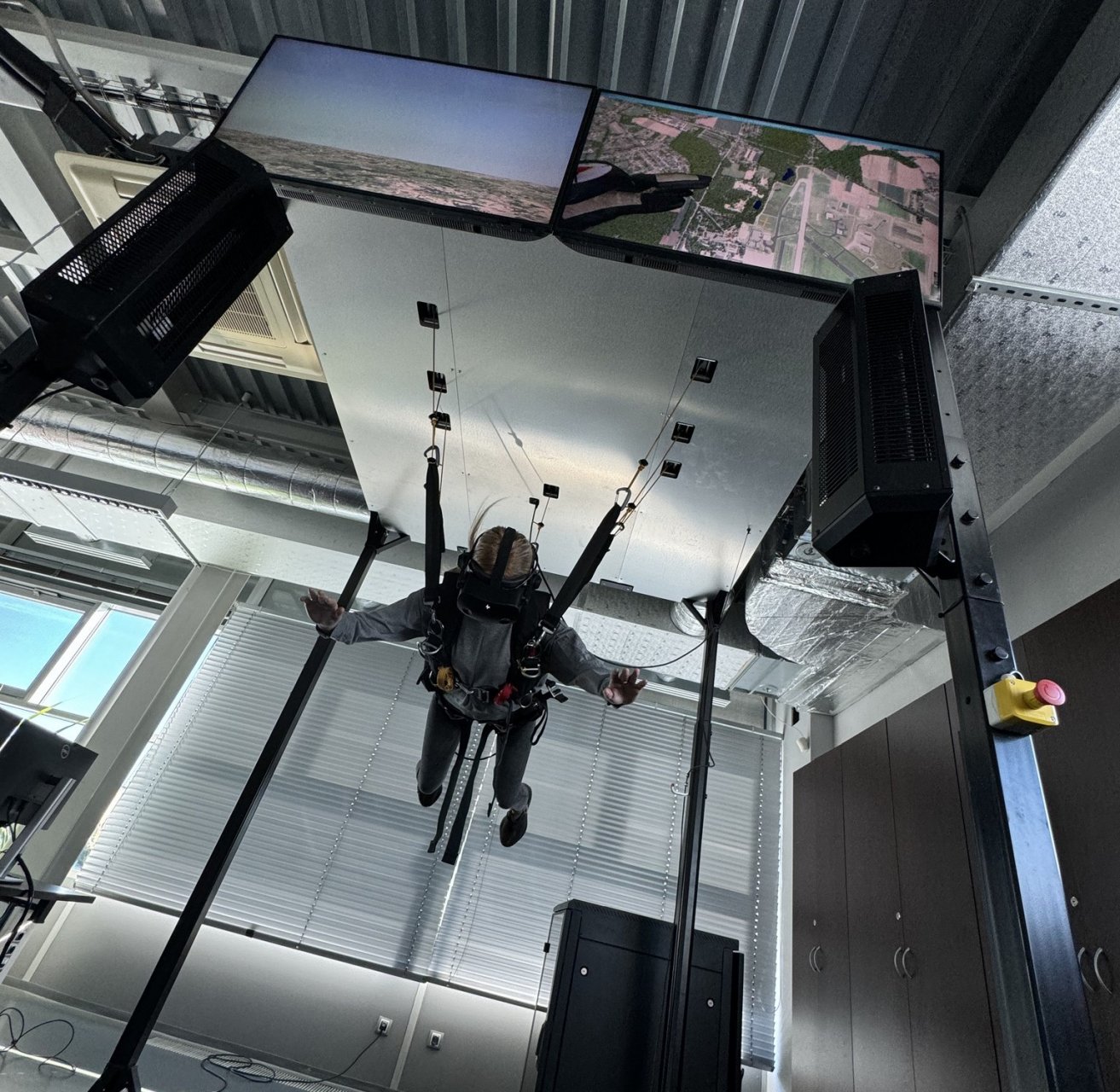 Díky pokročilé technologii mohou parašutisté zažít seskok v různých oblastech za denního i nočního osvětlení a při různých povětrnostních podmínkách. Skokan se obleče do stejného postroje jako při skutečném seskoku a zavěšen do trenažeru, který je elektronicky ovládán zkušenými instruktory. Naprostou autentičnost doplní virtuální realita.