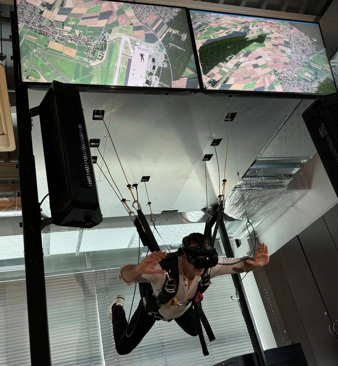 Před pár lety jsem byl v tunelu, což vcelku šlo, ale na to, aby si to člověk pořádně užil by tam musel jít vícekrát a trénovat. Ale zkušenost simulace seskoku padákem byla naprostý propadák. Pokud si doma pustíte větrák a zavěsíte se v sedáku s VR na mobilu (Google cardboard nebo Samsung gear), tak na tom budete podobně. Grafiku bych přirovnal k něčemu mezi PS3 a 360° fotce na googlu street view (pravděpodobně je to promítnutá satelitní fotka na výškovou mapu s dosazenými stromy). Zážitek pro dva měl trvat 30 minut, ale v reálu to nebylo ani 20 z toho seskok byl tak 3 minuty pro každého. Headset je starší HTC Vive Pro. Na nastavení IPD (vzdálenost oči) zapomeňte. Prostě vám to jen hodí na obličej a utáhnou, takže obraz je značně rozmazaný (i po zajištění, že jsou čocky přímo v ose oči). Kdybych to nedostal jako dárek, tak hodně peněz lituji. Chudáci lidí, pro které je toto první setkání s VR, odnesou si velmi špatný první dojem.