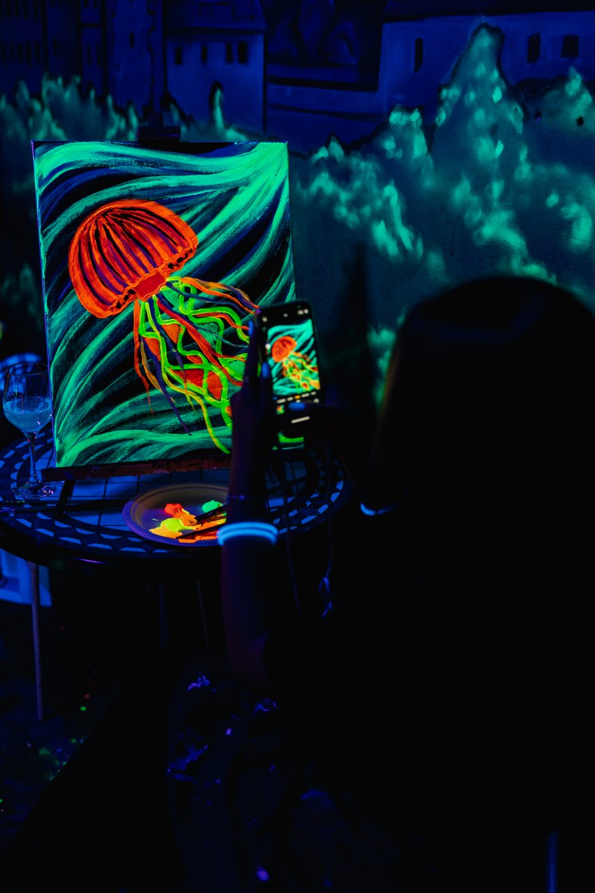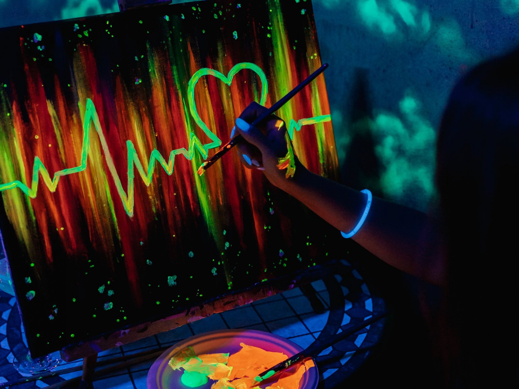 Klasické malování se štětci a barvami na plátno? Ne tak docela! Na ArtNeon vás čeká kreativní hra barev, světel a tmy. Neonové malování probíhá téměř v úplném šeru pod jemným UV světlem. Za použití barev s luminiscenčními pigmenty vytvoříte vlastní obraz, který se ve tmě efektně rozzáří. Užijte si luxusní zážitek plný umění i pohodové atmosféry.