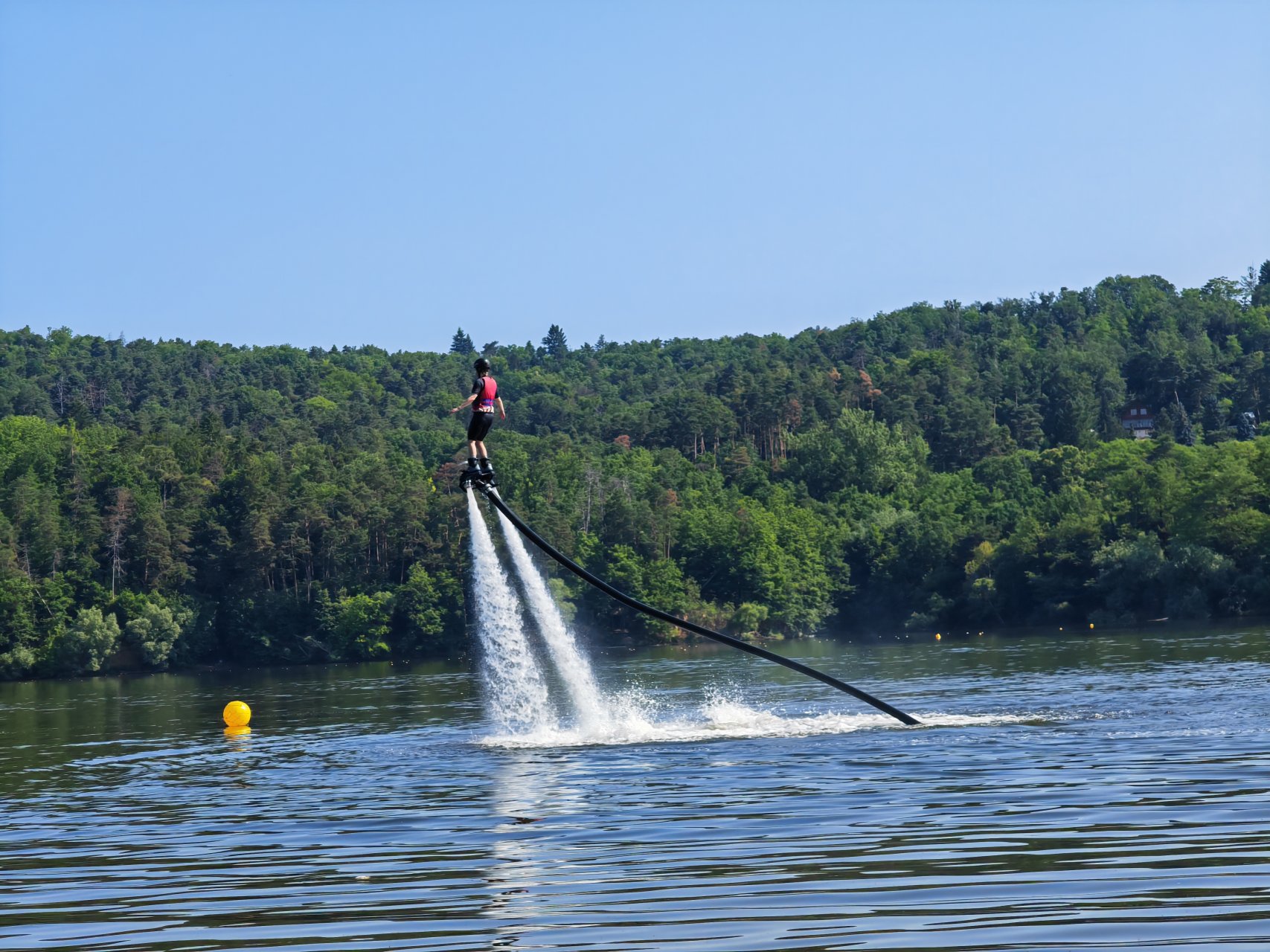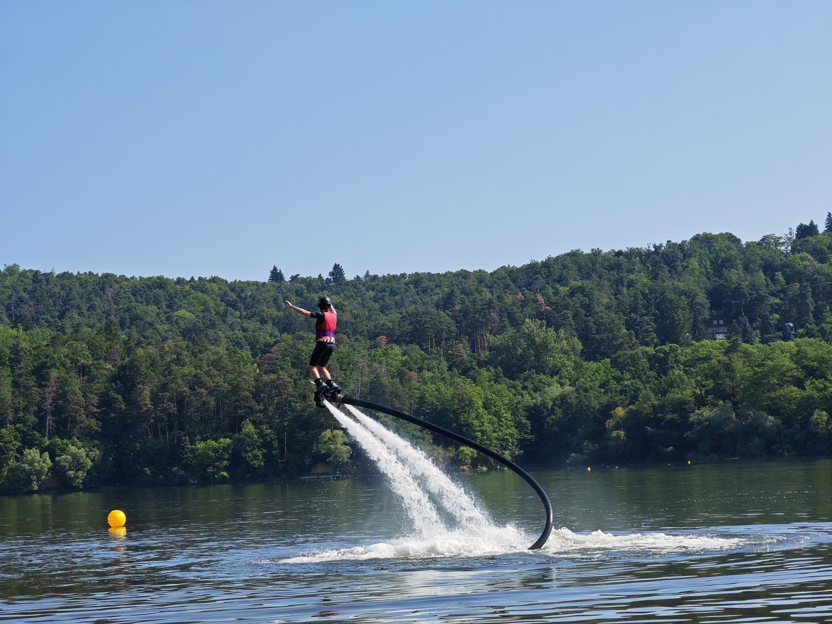 Vyzkoušejte, nebo darujte adrenalinový vodní zážitek Flyboard v Hradci Králové. Unikátní tryskové boty poháněné proudem vody umožňují létání nad vodní hladinou.